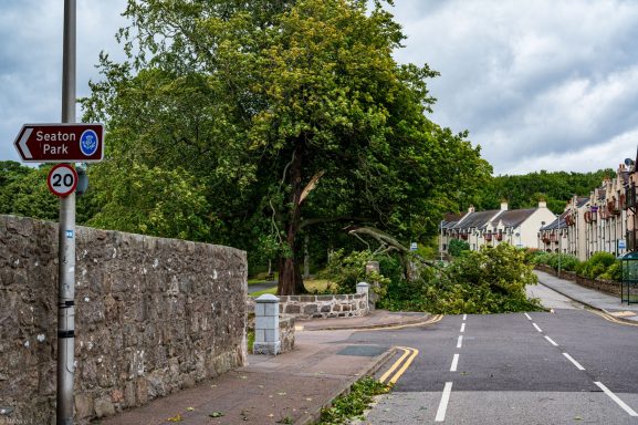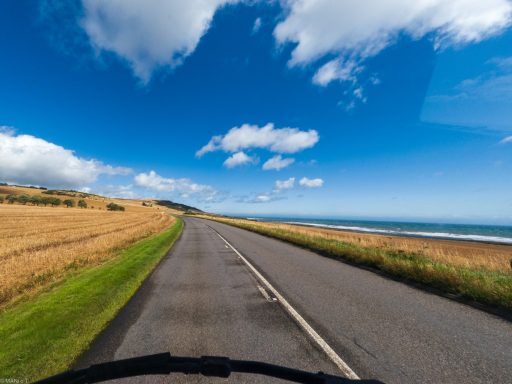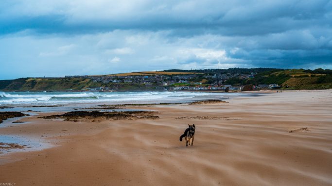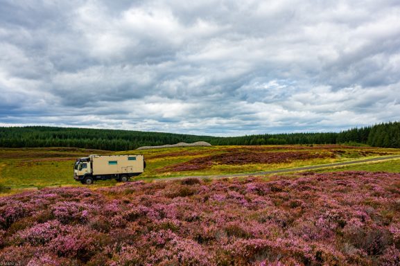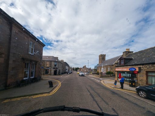 Die Übernachtung an der nördlichen Küste von Aberdeenshire brachte wenig Schlaf. Der Sturm Floris rüttelte mit 110 km/h am Womo.