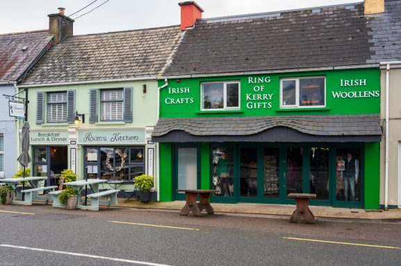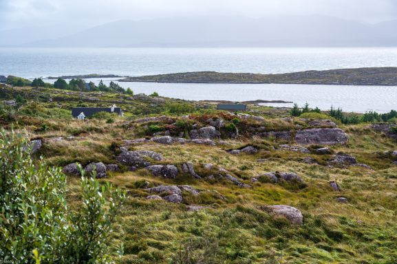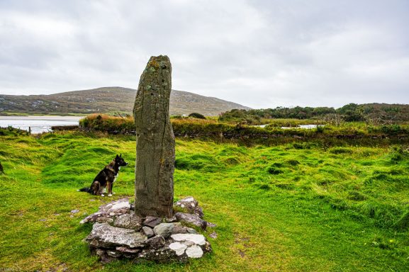 bei Derrynane. Ogham ist die älteste Form der irischen Schrift und erkennt man an den Einritzungen in den Kanten.