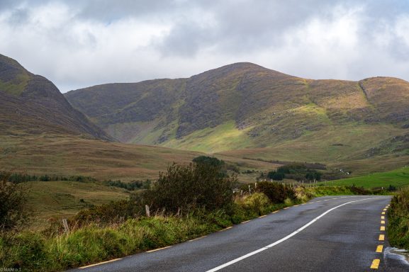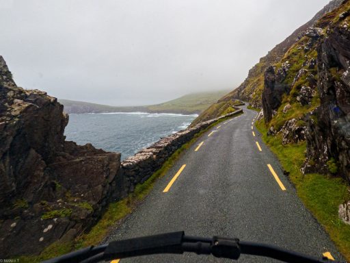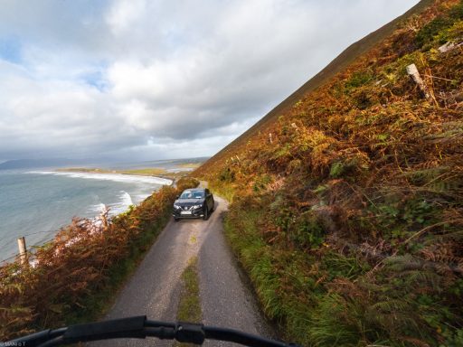 Sehr schmale Passstraße am Skellig Ring. Erst als ich oben war sah ich ein Schild das die Straße für große Fahrzeuge ungeeignet sein soll.