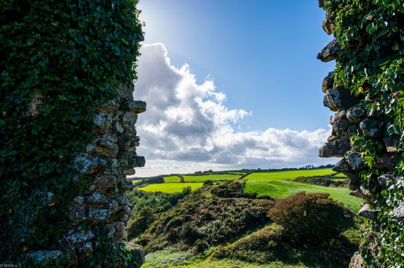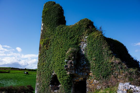 Eine Burgruine im Copper Coast Geopark. Der Parkplatz war gut für eine Übernachtung und Spaziergänge geeignet.