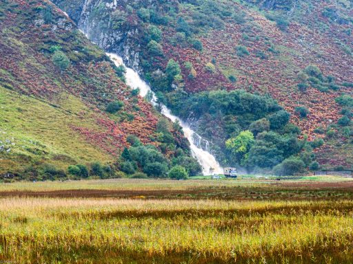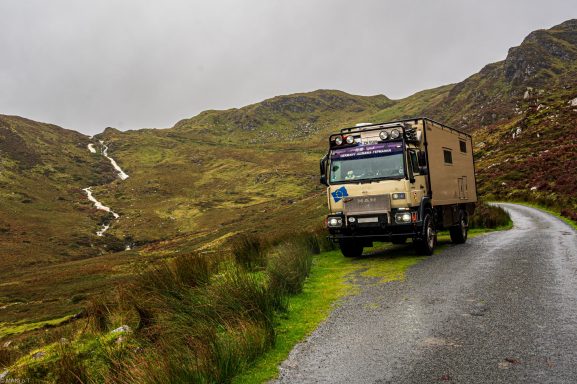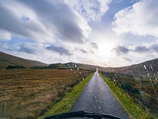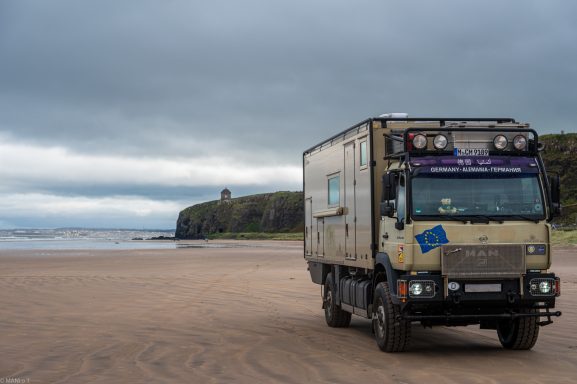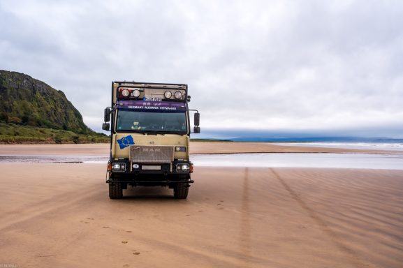 Ein großer, befahrbarer Sandstrand unter dem Mussenden Temple. An der Einfahrt zum Strand konnte ich übernachten.