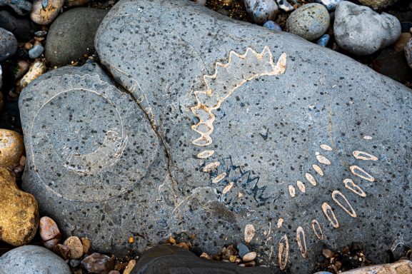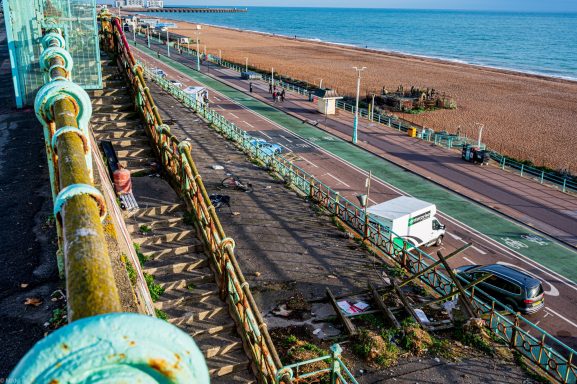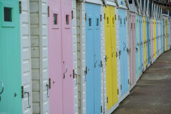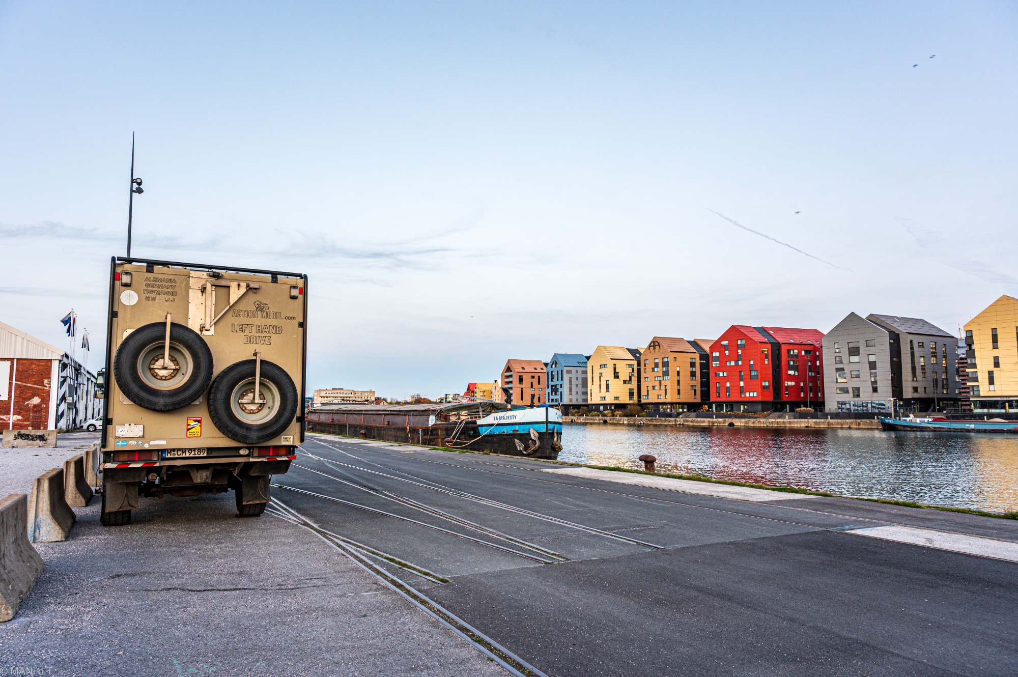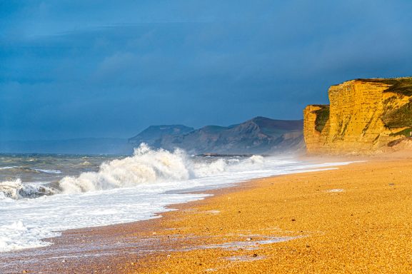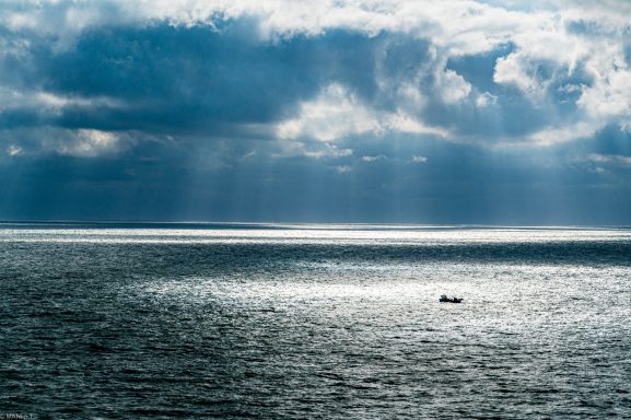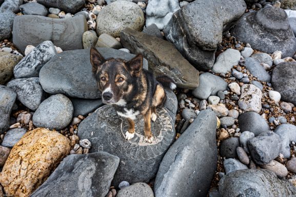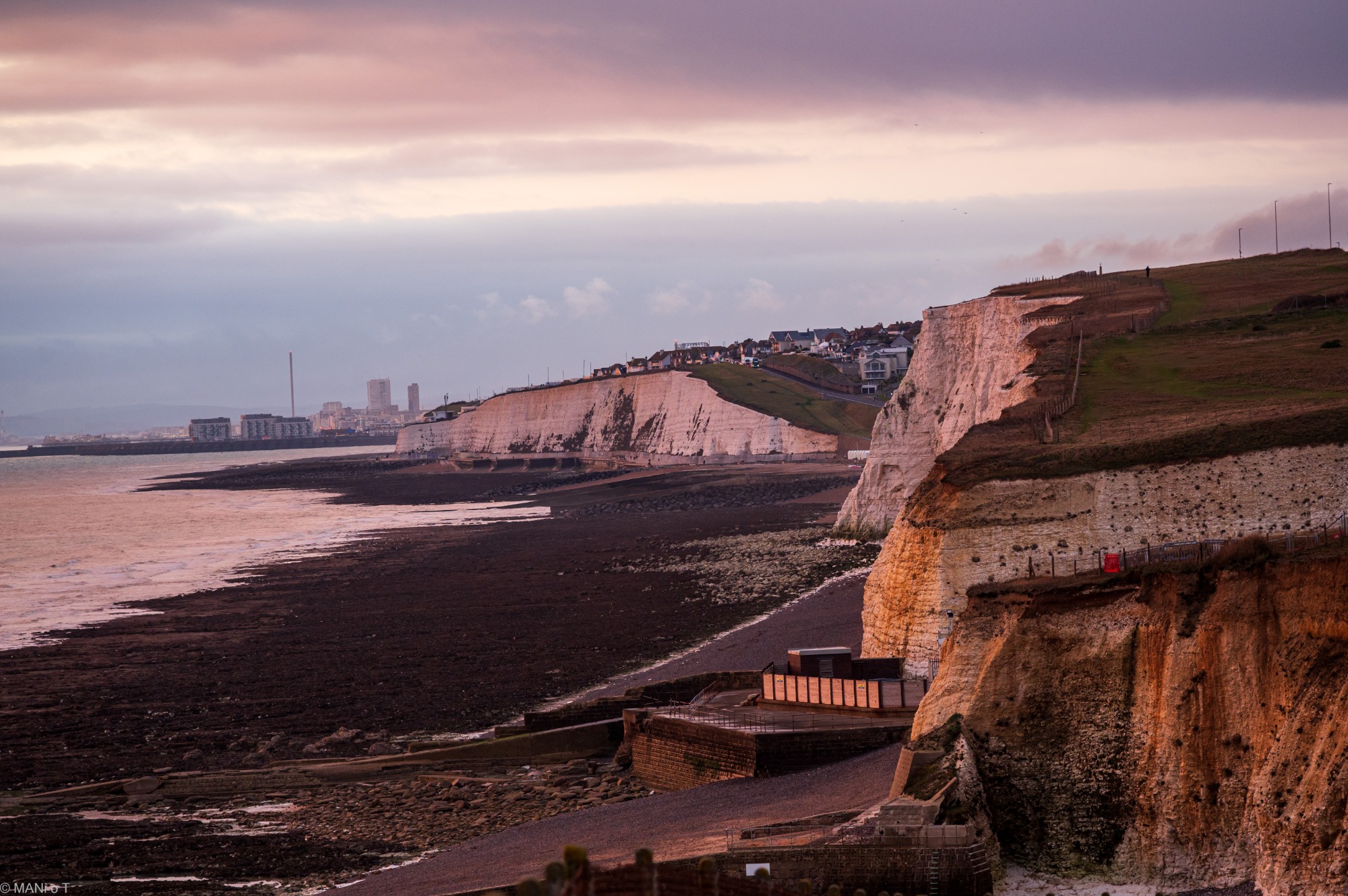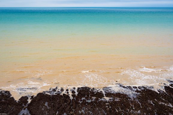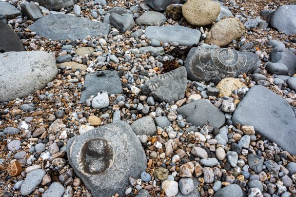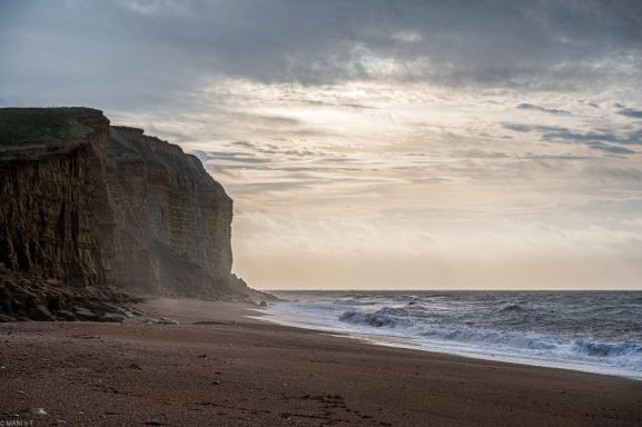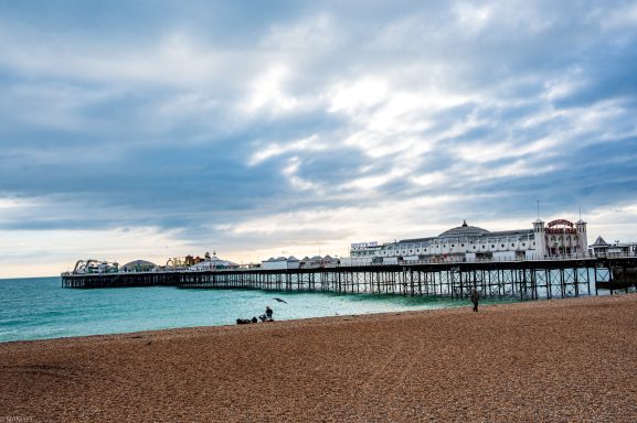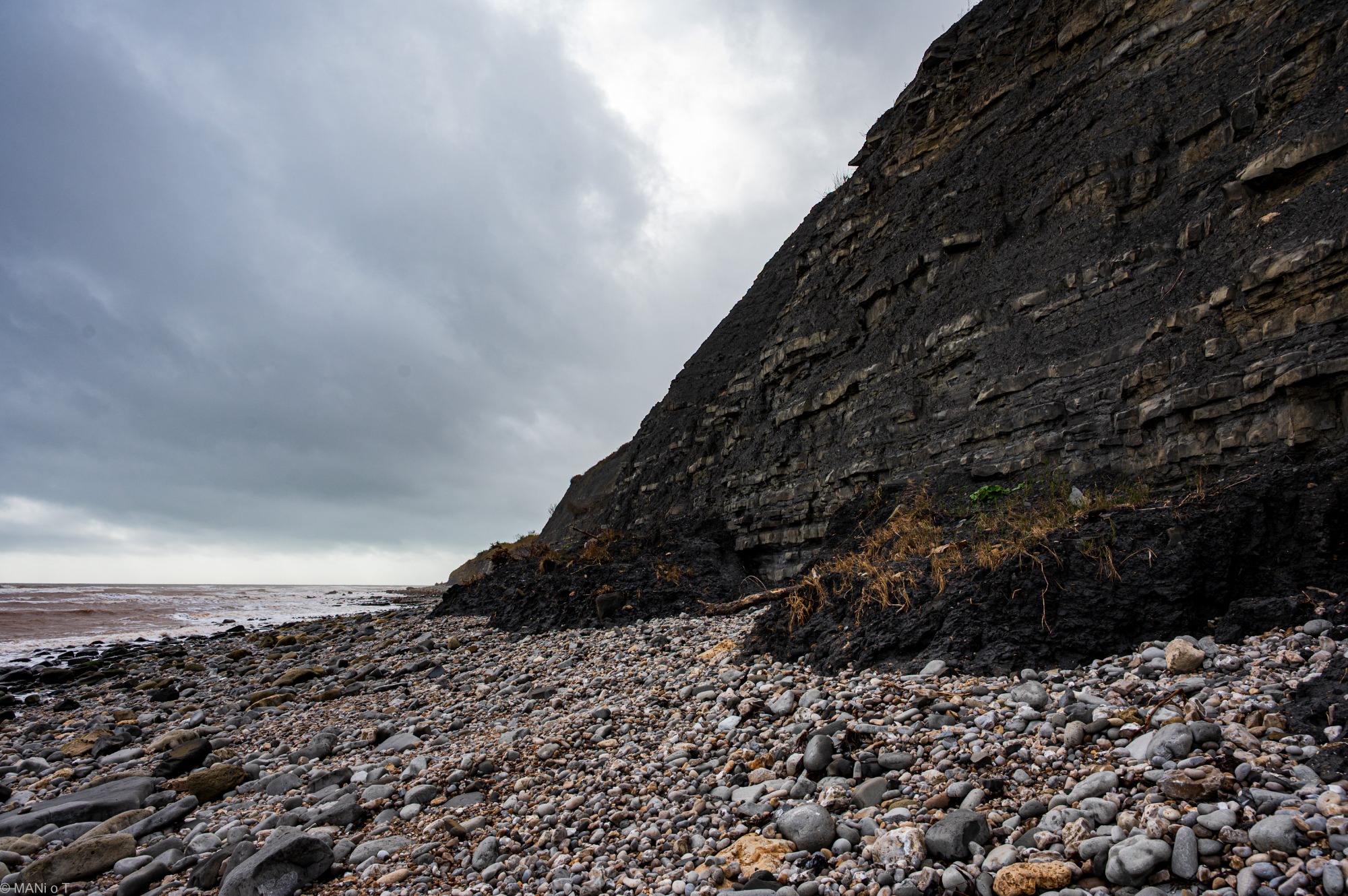 Einer der längsten Kiesstrände in einem Naturreservat mit Kernkraftwerk, Schmalspurbahn und Schrottreifen Kettenfahrzeugen am Strand.