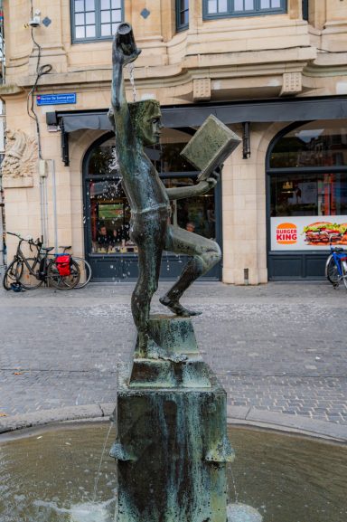 „Jemand der sich ein Bier in den Kopf gießt und dabei sein Verhalten studiert“, was auf das reiche Studentenleben in der Stadt anspielt.